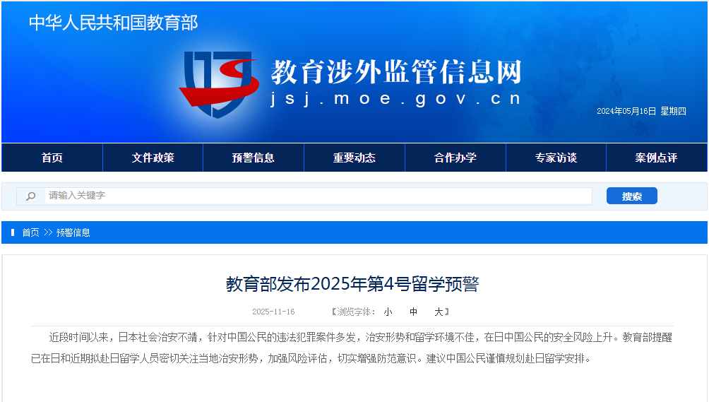 近期,日本治安不稳定,针对中国公民的刑事案件频发。治安形势和留学环境困难,在日中国公民的安全风险加大。继外交部发出避免赴日旅游的警告后,教育部昨天发布今年第4号留学预警,建议中国公民谨慎规划赴日留学安排。在日及近期拟赴日留学人员应关注当地安全形势,加强风险评估,切实增强防范意识。同日,文化和旅游部也正在认真教育中国游客近期避免前往日本旅游。中国赴日游客应提高安全防范意识,加强自我防护,做好安全防护。发生紧急情况,及时报警并联系日本使领馆寻求帮助。近日来,有关高市早苗的言论加剧了中日关系的紧张。日本外务省亚洲大洋洲局局长金井正明今天将访华,就“台湾事件”的议会辩护问题与中方进行磋商。金井预计将与外务省亚洲司司长刘劲松会面,解释高一早苗的言论不会改变日本政府目前的立场,强调即使是中日两国也不能影响人员往来。日本媒体报道称,日本政府认为此时不宜进一步升级事态,计划通过外交渠道冷静评估中方的应对措施。中国是日本第一大贸易伙伴、第二大出口对象国和最大的进口来源地。去年,中国游客在日本的消费总额领先于世界各地游客。今天,三部门发出警告。日本有何反应?身在东京的东方卫视记者宋侃侃对此进行了独家调查。宋侃侃介绍,高市早苗在国会就台湾问题发表讲话引发日本政坛、舆论和外交的连锁反应。小泽一郎、桥本彻等日本政界人士纷纷表态,批评高一的仓促言论造成政治动荡、两国关系紧张、经济不稳定,对日本自身没有任何好处。目前,中国赴日旅游团、考察团大规模取消,原计划的酒店、餐馆、免税店等日本旅游业受到影响。野村野村(Nomura),日本野村研究中心研究员rch研究所昨日表示,中国赴日游客大幅下降,预计日本GDP将下降0.36%。初步测算,经济损失将达2.2万亿日元,约合人民币1011.6亿元。丰田汽车等与中国关系密切的行业也担心,如果日本政府不采取积极态度,将面临来自中国的经济打击。与此同时,“集体自卫权”、“危机局势的存在”等原本模糊而敏感的政策概念在这场风暴中被凸显出来,引发日本社会的反思。日本外务省亚洲大洋洲局局长赴北京磋商,但日本舆论对其访问并不乐观,担心中日紧张关系持续下去。与Ta有关的公然挑衅性言论iwan 并未得到日本政府和公众的认可。除了民众抗议外,不少日本政界人士也对高一提出批评,要求高一撤回相关言论。昨天,日本前首相、最大在野党民主宪法党党魁野田佳彦和政治调查委员会委员长本条智美批评高市早苗的言论,称她涉台言论“越界”,导致日中关系陷入严重局面。高市前任、前首相石破茂也警告称,在台湾问题上,中国一直坚称这是中国内政,历届日本政府也始终避免发表“如果出现某种情况,就会予以处理”等果断表态。前首相鸠山由纪夫发表文章批评高市早苗煽动危机、为军事扩张寻找借口;他强调,台湾是中国的一部分,日本不应干涉中国内政。与此同时,不少日本政界人士指出,高适的言行将大大压缩日本未来的政策空间。日本立宪民主党议员小泽一郎警告称,高一的“攻击性言论”足以造成日中关系受损、国民情绪恶化、进出口贸易减少、人员往来受限等一系列负面后果。日本共产党参议员山添卓表示,高市应撤回相关言论,以防止日中关系恶化。日本社会民主党鹿儿岛县联合会也提出抗议。他们指出,高井的相关言论不仅违反了日本宪法第九条,但也背离了日本政府的一贯立场。民众的反对声也一浪高过一浪,日本民众自发在首相官邸前集会,要求高市早苗下台。我们正在修复有关高端市场的错误评论的时间表。本月7日,高市在回答众议院预算委员会会议议员提问时公开表示,“台湾发生的事情”可能成为日本行使集体自卫权的“现有危机局势”。言外之意是,日本可能会武力干预台海。所谓“现有危机局势”,是日本前首相安倍晋三十年前在推动“新安保法”时杜撰的一个法律概念:即使日本没有受到直接攻击,如果美国等关系密切的国家能够以武力攻击,从而威胁日本g 日本的国家安全,自卫队可以行使集体自卫权。但具体标准尚不明确。 “如果台湾发生什么事,就意味着日本也会发生什么事。”它本质上是把中国的国家统一和日本的安全拉扯、对立起来。高市早苗成为战后日本第一位公开主张这一观点的现任首相。三天后的众议院预算委员会第二次会议上,日本最大在野党立宪民主党议员再次询问此事,并要求高市收回相关言论,但并未得到高市的积极回应。 11日,高市早苗的言论再次遭到国会质疑。不过,高市早苗的态度依然坚定,称“没有必要撤回”自己的言论。除了继续回应外交部记者会与此同时,中方还于13日召见了日本驻华大使金杉贤二。 14日、16日,外交部、教育部、文化和旅游部发布赴日旅行警告。 15日一早,《军声》发表署名“日本若敢以武力介入台海局势,将面临迎头痛击”的文章。这是中日外交场合首次出现“迎头痛击”一词,这意味着中方发出了做好重大反制准备的信号。高市早苗作为日本政坛140年来首位女首相,在执政时首次致电中国台湾。政府是“总统府”,后来又说军事干预台海。这样一个说话不假思索、一上台就制造灾难的政客,是如何登上权力巅峰的?当高井早苗首次当选时,一些人将他视为变革的积极象征,将扰乱日本政坛。但事实